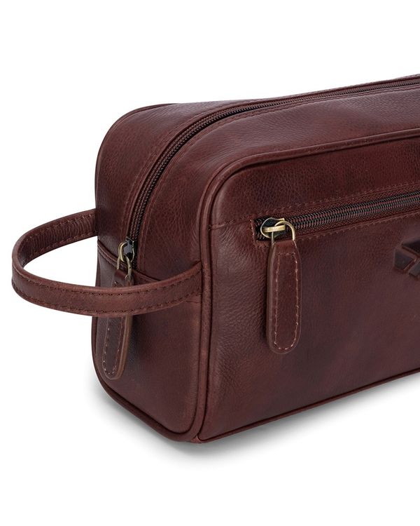 The rich Conker brown finish gives it a classic country style, while the natural variations in the leather ensure each bag is unique. Designed for practicality as well as style, it features a spacious main compartment with a sturdy zip closure, making it perfect for storing toiletries and grooming essentials whether at home or away.