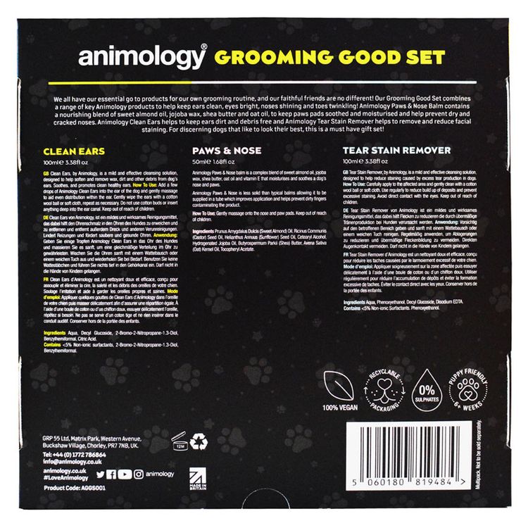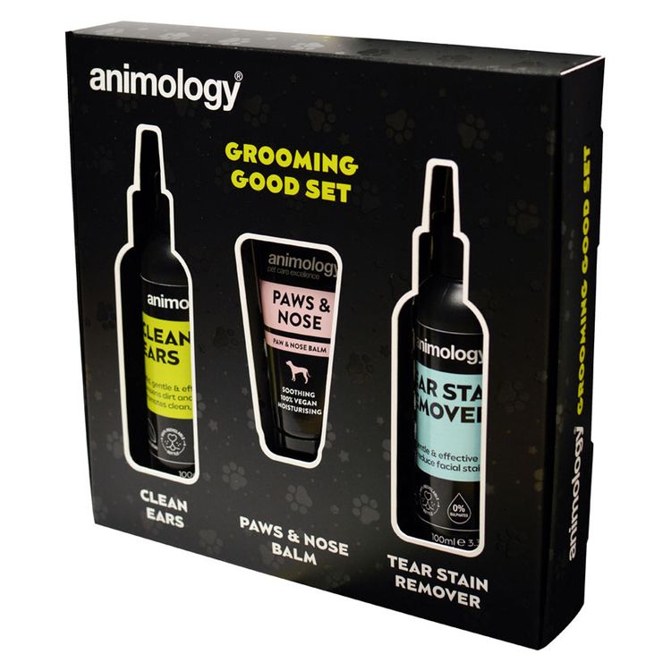 We all have our essential go to products for our own grooming routine, and our faithful friends are no different! Our Grooming Good Set combines a range of key Animology products to help keep ears clean, eyes bright, noses shining and toes twinkling! Animology Paws & Nose Balm contains a nourishing blend of sweet almond oil, jojoba wax, shea butter and oat oil, to keep paws pads soothed and moisturised and help prevent dry and cracked noses. Animology Clean Ears helps to keep ears dirt and debris free and Animology Tear Stain Remover helps to remove and reduce facial staining. For discerning dogs that like to look their best, this is a must have gift set!