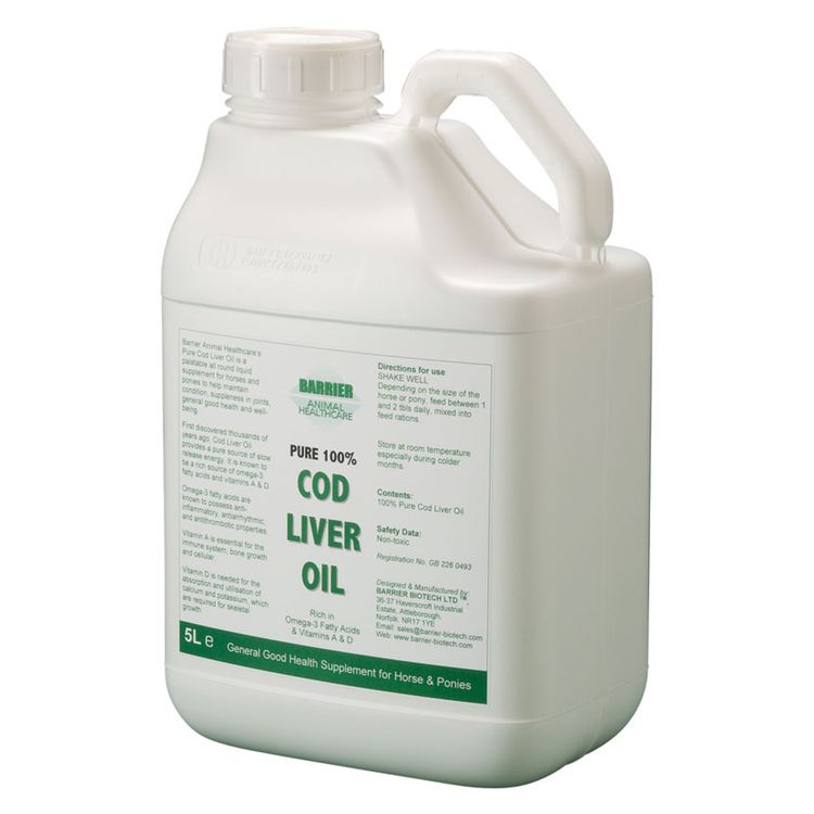 Cod liver oil is a palatable multi-purpose liquid supplement that helps maintain supple joints and general good health and wellbeing. Barrier Animal Health use 100% natural plant-derived active ingredients, making all products effective and safe for animals and humans!