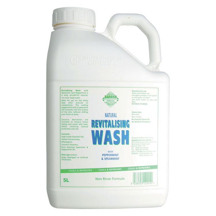 A no-rinse body wash containing Spearmint and Peppermint that refreshes the horse whilst removing heavy perspiration with ease. The natural ingredients cool the outside of the horse without chilling them inside. This product is ideal for use after exercise, competition and fast work. Can be used with Barrier White Ice for enhanced cooling. Barrier Animal Health use 100% natural plant-derived active ingredients, making all products effective and safe for animals and humans!