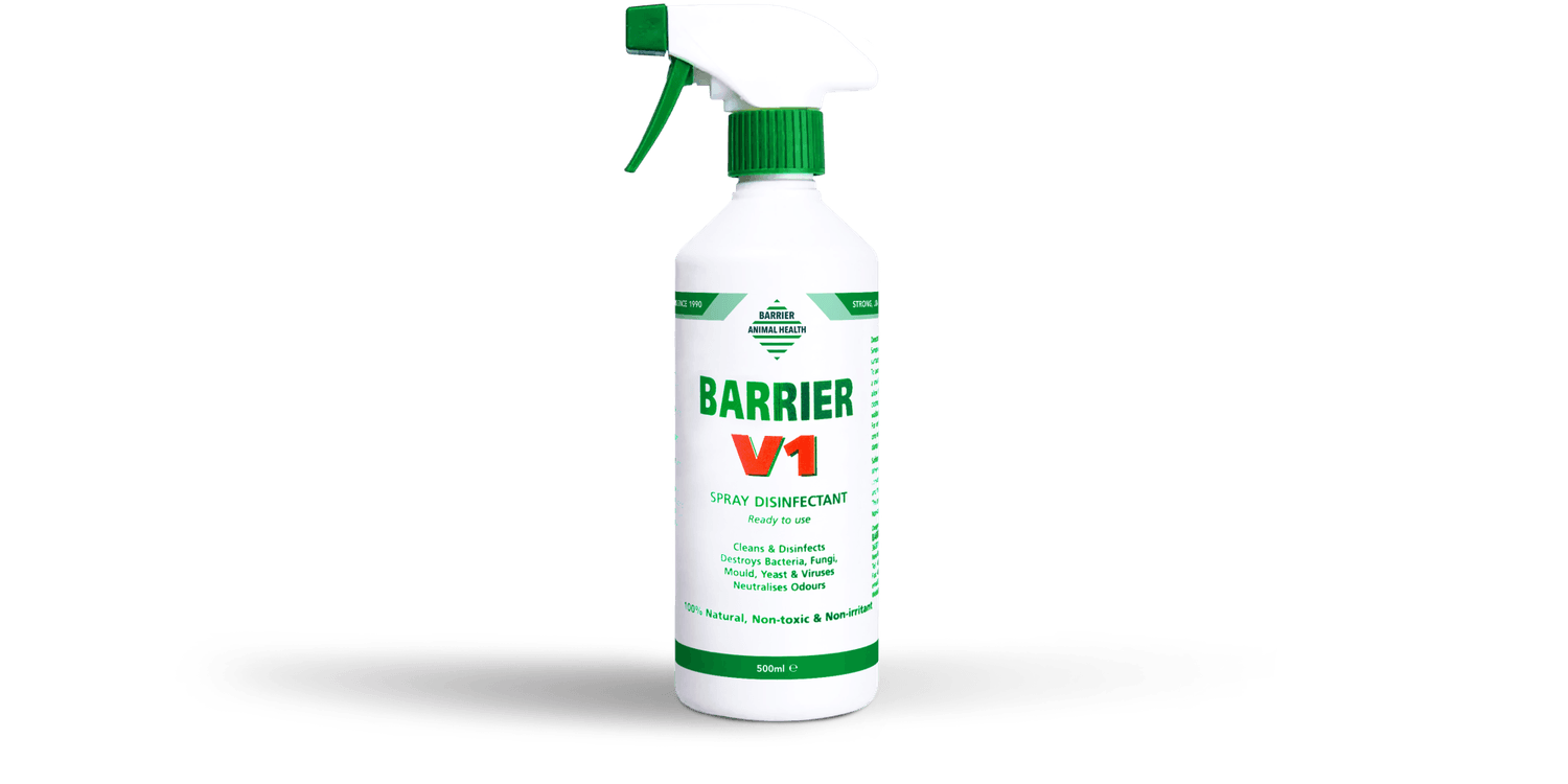 Uniquely formulated to clean and disinfect simultaneously, Barrier V1 is a multi-purpose spray suitable for hard surfaces, kennels, cat litter trays and poultry housing. With entirely natural ingredients, it is safe for use in the kitchen or on hard surfaces around pet bedding. It destroys fungi, mould, yeast and bacteria, keeping your pet areas fresh, clean and safe.Barrier Animal Health use 100% natural plant-derived active ingredients, making all products effective and safe for animals and humans!