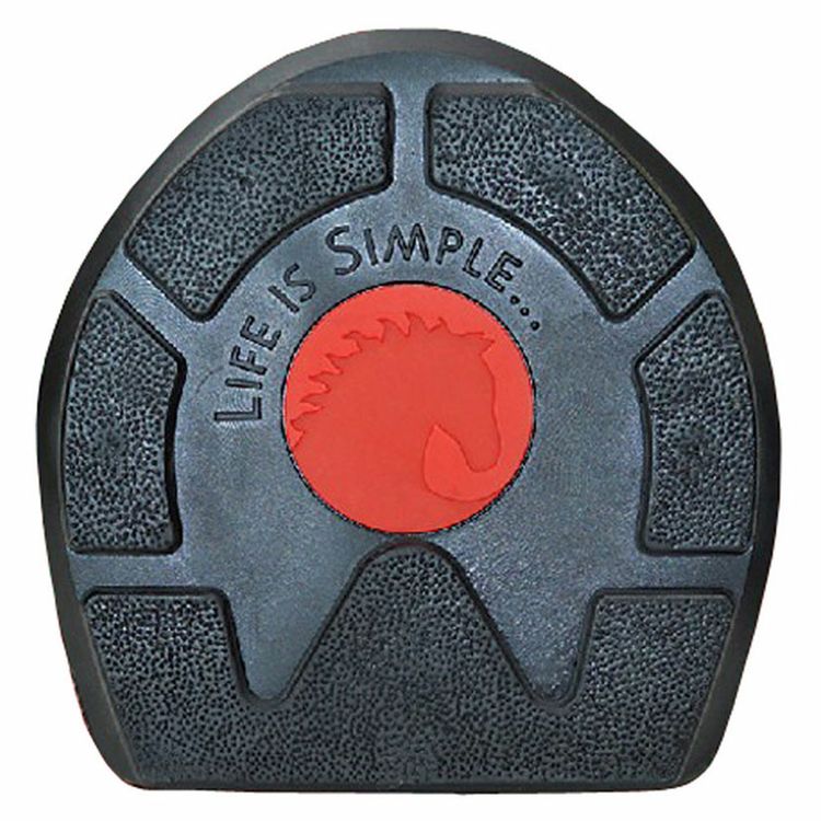 Simple to put on and remove, stays securely on hoof. Durable construction: rust proof metal waterproof thread and high performance TPU outsole. Absorbs shock and concussion. Suitable for all terrain. Built-in drainage. Fits left or right hoof. Is lightweight with a built-in sole relief to take the pressure off sole bars and frog. Moulded-in TPU back flap for maximum bulb protection. Sold in singles.