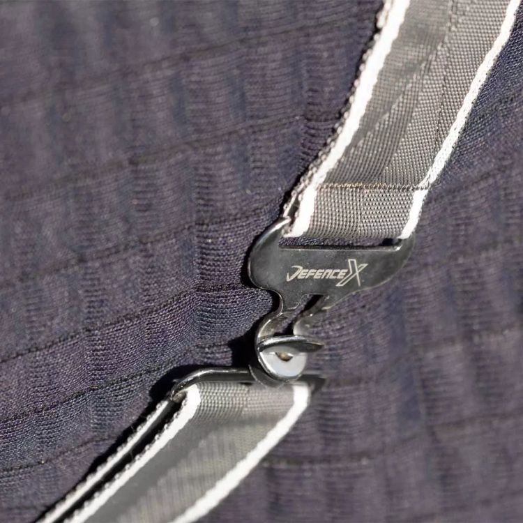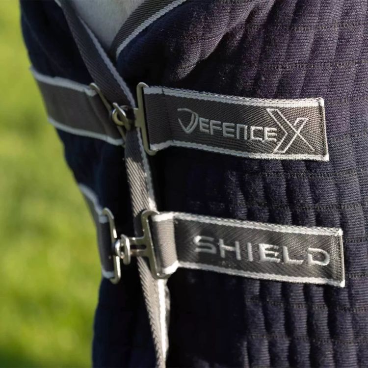 Introducing the DefenceX Shield Luxury Softshell Walker Rug with Faux Fur. Designed using a premium softshell outer with micro brushed fleece inner, allowing for optimum temperature control and protection. The deluxe faux fur around the neck and shoulder provides unrivalled comfort and reduces the risk of rubbing - perfect for sensitive horses. Fastened with adjustable clip front fastening with padded protector, adjustable cross surcingle’s and fillet string allowing for a secure and comfortable fit. Ideal for when your horse is on the walker, being lunged or other ground work activities.