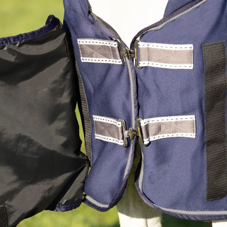 The DefenceX Shield Royal Elite Fleece Rug is a luxurious addition to any horses’ wardrobe. Ideal for use whilst travelling, after bathing or exercise, as a light stable rug or show rug, or under another rug for added warmth. Made from soft fleece fabric which traps the air to help insulate your horse keeping them warm and comfortable. The fabric also wicks moisture away from the skin making it ideal to be put on a damp horse to prevent them from catching a chill. Featuring a rolled cushioned neckline which prevents rubbing at the withers, single fastening front with secure touch tape closure, adjustable cross surcingle’s and wipe clean fillet string. Complete with contrast stitching edging for that extra eye-catching touch for a smart finish.
