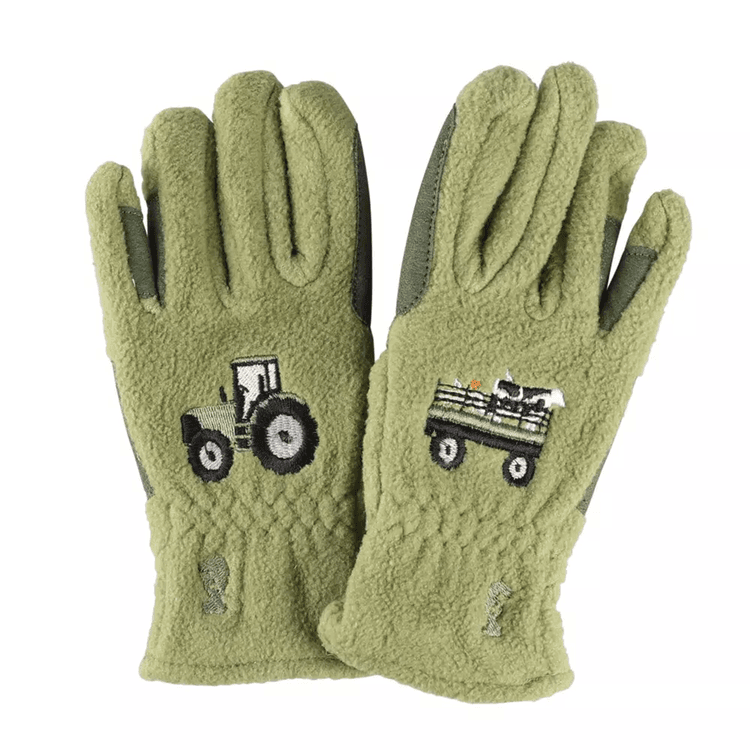 Keep hands cosy and warm with this fantastic fleece riding glove, specially designed for winter riding! These gloves benefit from an elasticated cuff to keep out the bad weather, Amara palms to increase grip and reinforced rein fingers to protect against excessive wear. Featuring tractor and trailer of animals on the back of the hands to match perfectly with the rest of the Farm Collection.