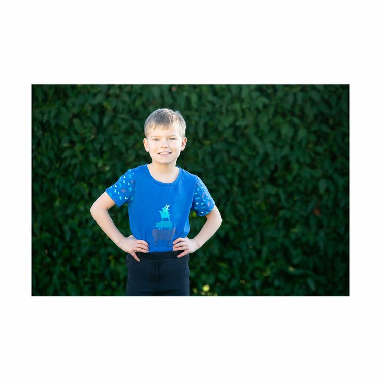 Perfect for any farm fanatic, this trendy blue t-shirt features a tower of farm animals on the front and repeated farmyard animals on the sleeves. Made from a breathable and lightweight material, this t-shirt from the Little Knight collection is guaranteed to keep your little ones cool and comfortable! Perfect for days in or out the saddle. Why not match with the rest of the collection?