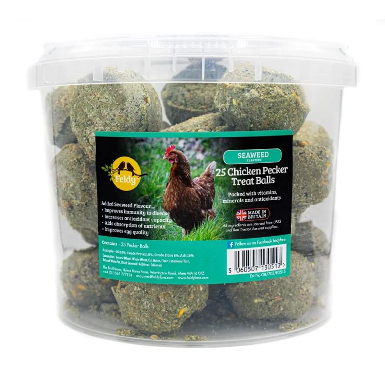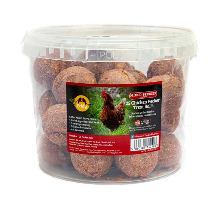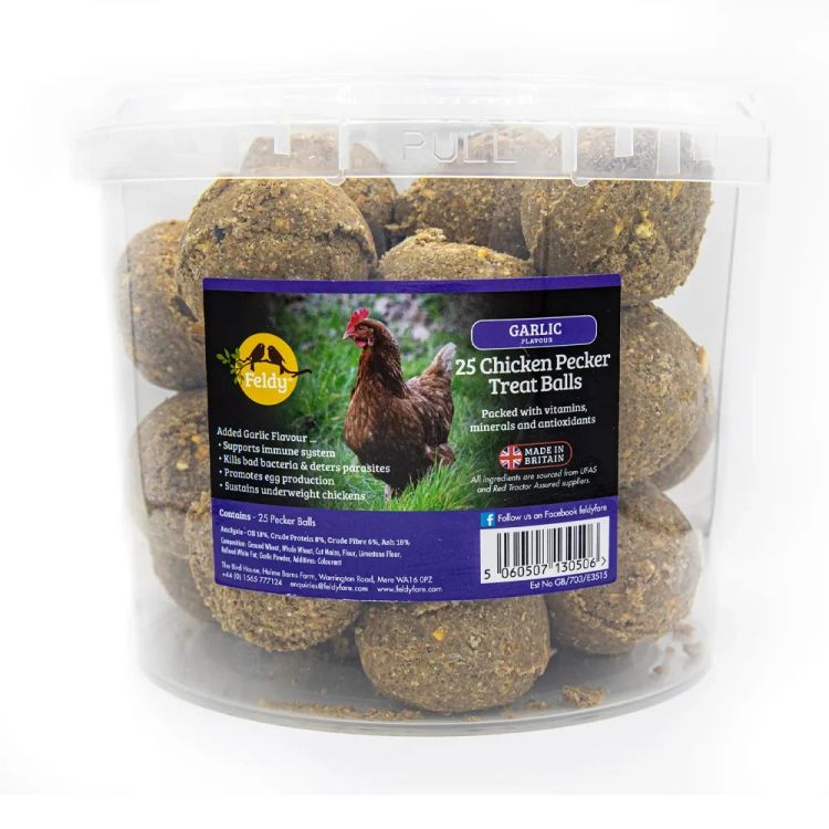 An innovative pecker ball for treating your flock. No fillers or binders and free from palm oil. Use a fat ball feeder to feed and provide necessary nutrients. The perfect boredom buster for entertaining your chickens. Available in a variety of flavours your chickens will love.