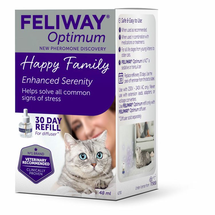 Feliway Optimum is a NEW feline pheromone complex to convey more impactful messages to calm cats better than ever. This pack contains a diffuser and one refill of 48ml.