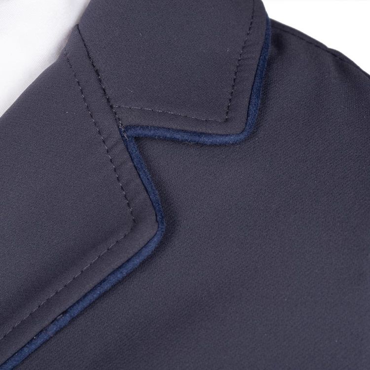 The Hy Equestrian Elevate Artemis Show Jacket is a sophisticated blend of modern tailoring and classic equestrian style. Designed in a smart navy fabric with a flattering, contoured fit, this jacket offers elegance and comfort for competition days. Subtle suede detailing around the collar and around the pockets adds a luxurious touch, giving it a refined finish that stands out in the ring without being overstated. The jacket is fastened with stylish, traditional buttons for a smooth silhouette, along with a back vent to allow freedom of movement in the saddle. Lightweight and breathable, it ensures comfort through long classes while maintaining a polished, professional appearance. Ideal for riders looking to combine timeless style with performance-ready design.