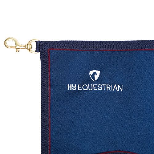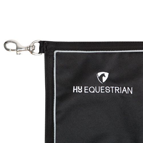 A smart stall guard complete with four trigger clips to easily hold it in place. Featuring coloured piping around the edge and Hy Equestrian embroidery to one corner. Perfect at competitions.