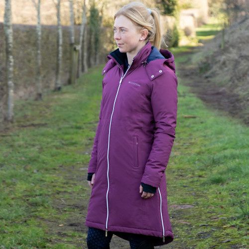 An essential jacket for the winter months! A smart and well fitted long waterproof and windproof padded coat to keep you dry, warm and protected from the cold weather. Shaped with a lower back, zipped riding vents and two way front zip to not only look stylish, but provide extra protection and ease of movement, especially when riding. A hood provides extra protection from inclement weather, that can also be unzipped and removed if desired. With adjustable waist for a flattering fit, cosy soft fleece lining for extra warmth and snug storm and thumb hole cuffs for extra protection. Silver zips add a classy finish, including to the two zipped front pockets. Finished with Hy Equestrian logo to the chest and emblem to the back of the neck.