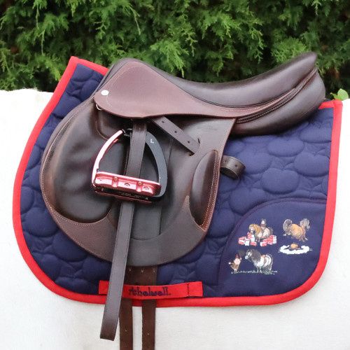 Practice makes perfect after all! Enjoy riding in this adorable saddle pad from the Thelwell collection by Hy Equestrian. Featuring fun apple shaped quilting, girth straps and fastenings, contrasting edging and Thelwell cartoons. Why not pair this with the rest of the Practice Makes Perfect collection for the ultimate matchy matchy look!