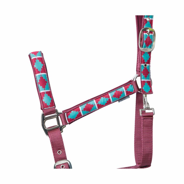 This smart Woven Polo Head Collar is perfect for everyday wear or to save for best. Stylish woven aztec style patterns feature on the noseband, cheek pieces and head piece for a fashionable look. Finished with silver hardware and matching lead rope.