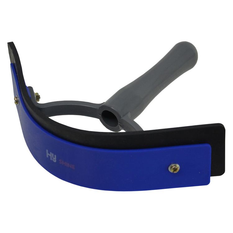 Two tone, soft touch sweat scraper with a rubber edge on one side to remove excess water from the horse's coat.