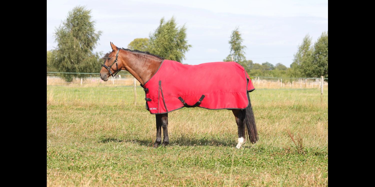 Part of the HyCONIC range, this 200 turnout rug is made from a waterproof 600 denier red material to help keep your horse snug in the colder months. This rug features red cross surcingle’s, twin buckle chest fastenings and fillet string to keep the rug securely in place. With generous tail flap for extra coverage and shoulder gusset for freedom of movement. Finished with printed HyCONIC logo.
