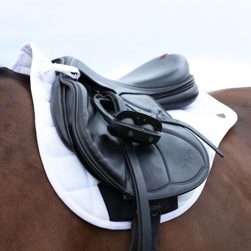 Where performance meets style. This innovative saddle pad is made from the latest unique 3D mesh fabric, promoting maximum airflow, breathability and moisture wicking to keep your horse comfortable and cool when they need it most. The specialised design and perforations of the AirFleX 3D Mesh Saddle Pad allow for unrivalled air circulation, allowing temperature control regulation and fast drying action. The anatomical shaping and techno-flex material allows the saddle pad to contour perfectly to the horse for optimal fit under the saddle. Featuring elasticated D-ring fastenings, girth protection guard and girth strap with white matte silicone detailing. Finished with coordinating trim and white piping for a classic look.
