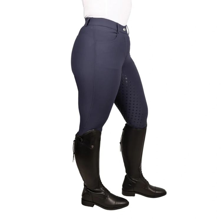 Create a statement style with the La Rubia Breeches. Made from a comfort stretch material that allows for a contoured and flattering fit, whilst still being comfortable and offering optimum flexibility and movement. This classically styled breech features handy front pockets, practical belt loops and fastened with silver Gutos and zip. The close-fit contour socks offer comfort under long boots or socks and the full silicone seat provides grip in all the right places when needed most in the saddle.