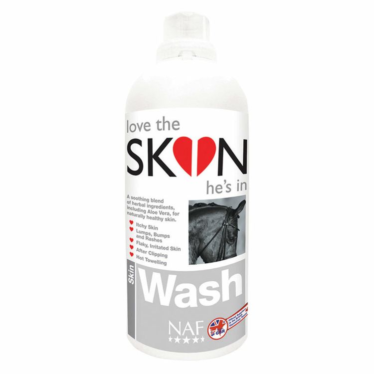 This totally natural skin wash offers the premium skin care your horse's skin deserves. Love the SKIN he's in Skin Wash is a gentle unique blend of herbal ingredients, including Aloe Vera, designed to help support damaged or challenged skin affected by lumps, bumps, rashes or mild irritations. This 3 in 1 product provides optimum skin care whichever way you choose to use it on your horse As a hot towel wash following clipping or for a deep clean As a cold wash for a refreshing cleanse to lift sweat, grease and dust from the coat Apply directly to the skin in a concentrated form to address specific areas requiring attention