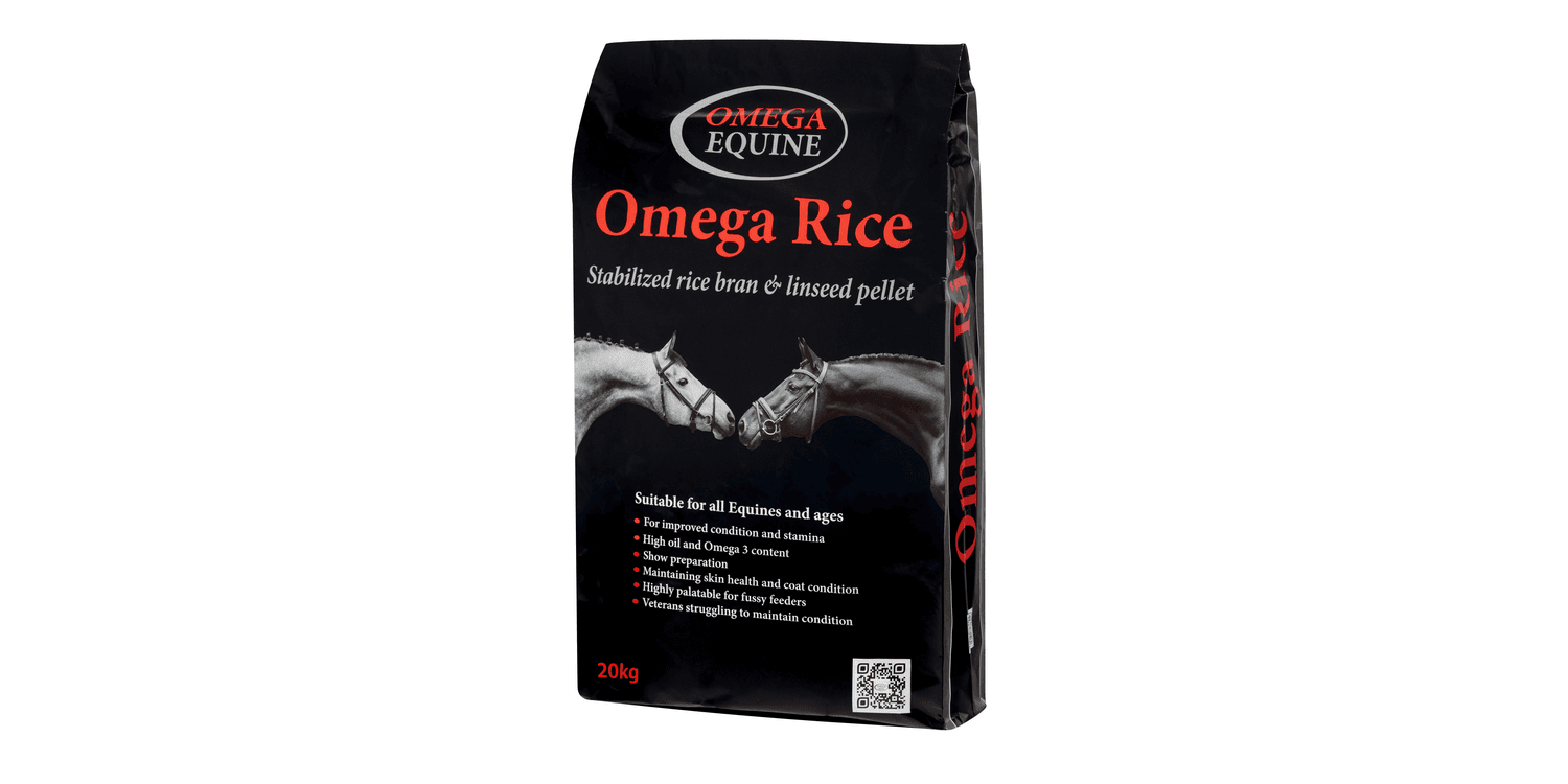 Omega Rice is a palatable stabilised rice bran and linseed pellet. High in oil, fatty acid omega 3 and limestone, it's perfect for horses who require condition and stamina. These high calorie pellets are perfect for fussy feeders or veterans struggling to maintain condition.