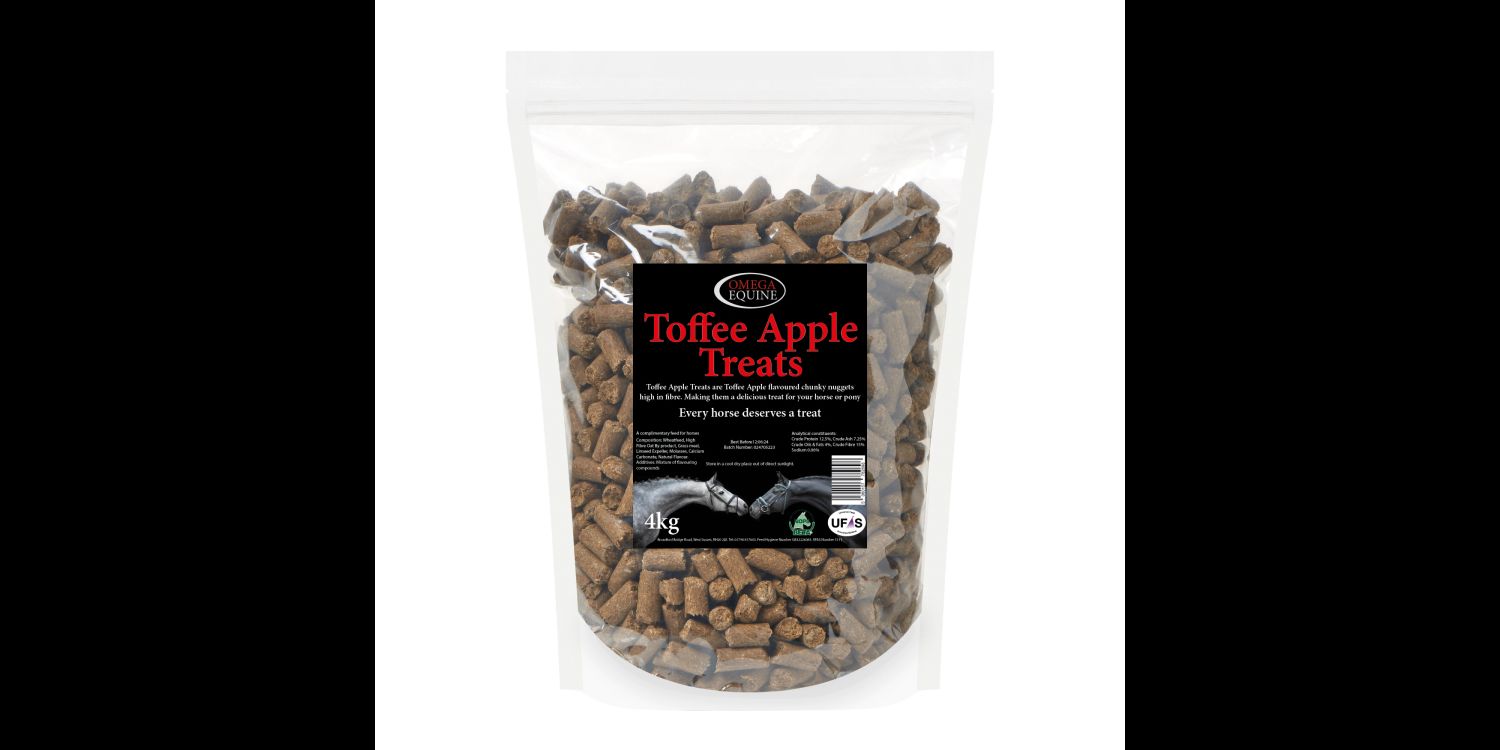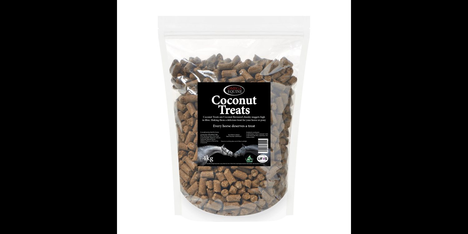 Omega Equine Treats are available in Banana Colada flavour and are packaged in a handy resealable bag for storage. A perfect size for training or to reward your horse. 'Every horse deserves a treat'.