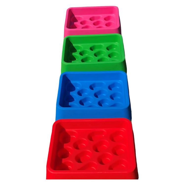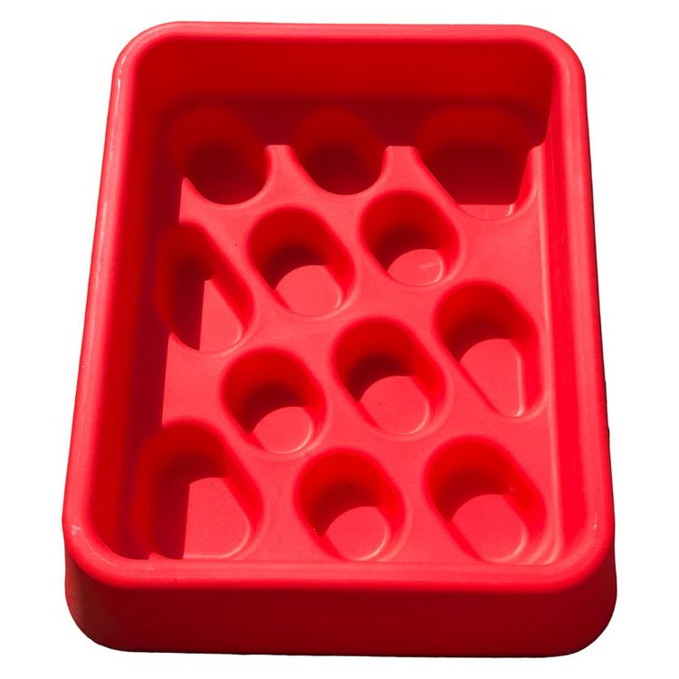 A non tip slow feeding trough for hard feed. PROVEN to slow down consumption by 50% or longer. Avoids wasted supplements and medication.