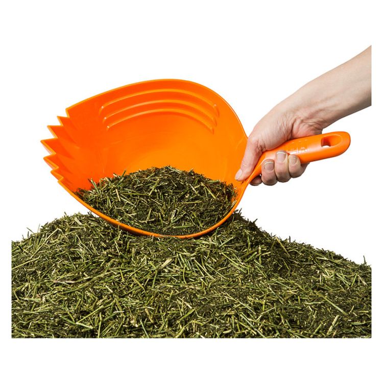 A uniquely designed feed scoop with teeth for loosening compacted feed, flat base for in scoop soaking. Measuring gills for accurate meals every time.
