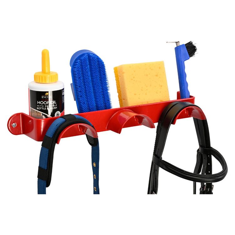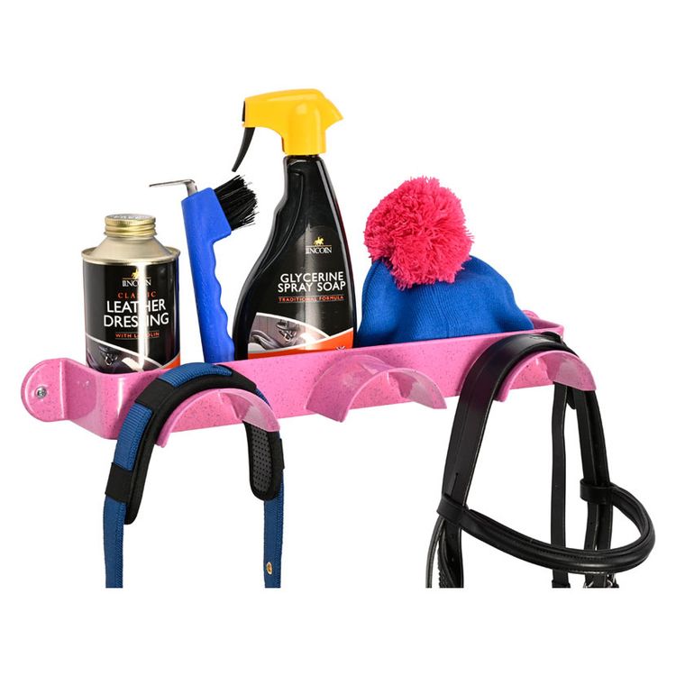 The new and unique Shelfie bracket combined with conventional bridle racks - a Stubbs standard for 5 decades. It features a compact design with a shelf for additional storage, making it perfect for stable tack rooms, trailers, or home stables. Keep your gear neat, tidy, and easily accessible with the Stubbs Bridle Shelfie.