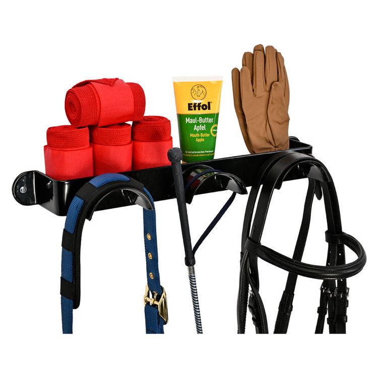 The Stubbs Bridle Shelfie  is a versatile and stylish addition to any equestrian space. This wall-mounted bridle hook provides a practical solution for organizing and displaying bridles, reins, and other tack items. Made from durable steel with a sleek, powder-coated finish, the Shelfie offers both functionality and aesthetic appeal.