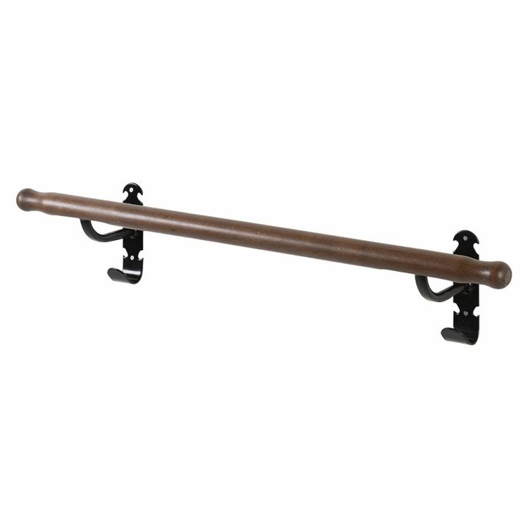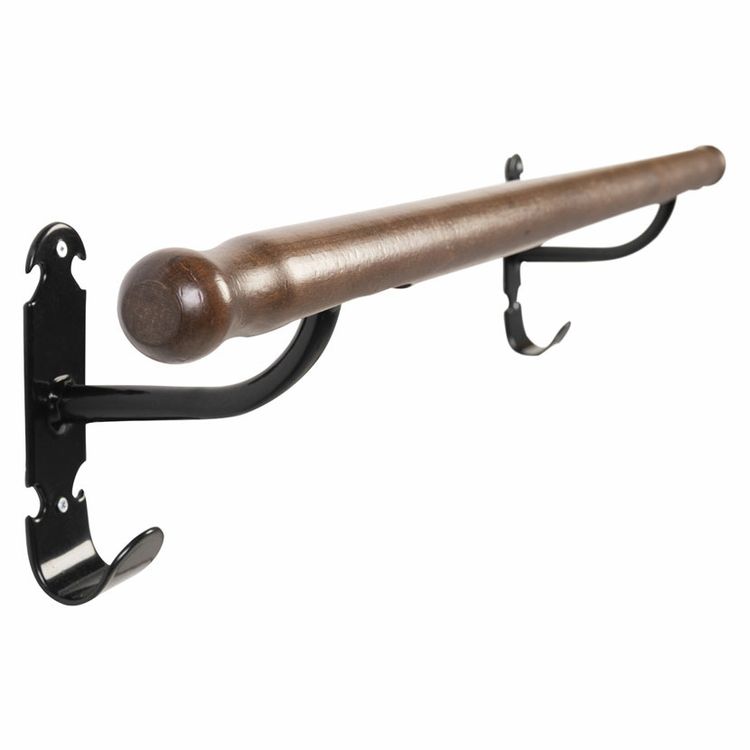 Expanding our highly popular Retro range, this rail is ideal for rugs outside the stable or in the tack room. The stylish metalwork and beautiful dark wood evoke the quality and class of centuries gone by. Good looking, the timber is turned with traditional end finials. The combination of wrought iron styled metalwork and waxed hardwood make this a quality partner to the highly popular Retro Saddle and Bridle Racks introduced in 2016. They have attracted the attention of the most discerning architects and owners, and are now seen in the finest tack rooms around the world; only the practical functionality exceeds the rich appearance. Increasingly used in shops too, they raise the standard of presentation. With price tags that are within everyone's reach, all can enjoy this traditional styling. In addition to the wall hooks, the pole ends provide hanging space for hats, coats, head collars, bridles and boots. Black STUBBYFINE coated steel construction and beautiful waxed hardwood.