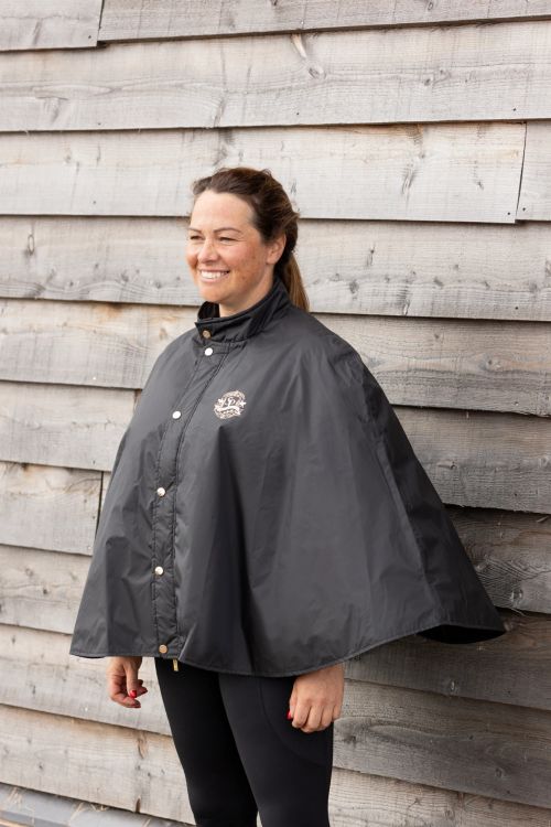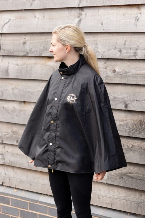A fully waterproof (10,000mm) and breathable (10,000mm) rain cape, ideal for popping over your show jacket at competitions when the weather takes a turn for the worst. Quick and easy to use, with hidden straps to prevent it from blowing around, we think this is an essential wardrobe must-have! Finished with signature gold hardware and branding.