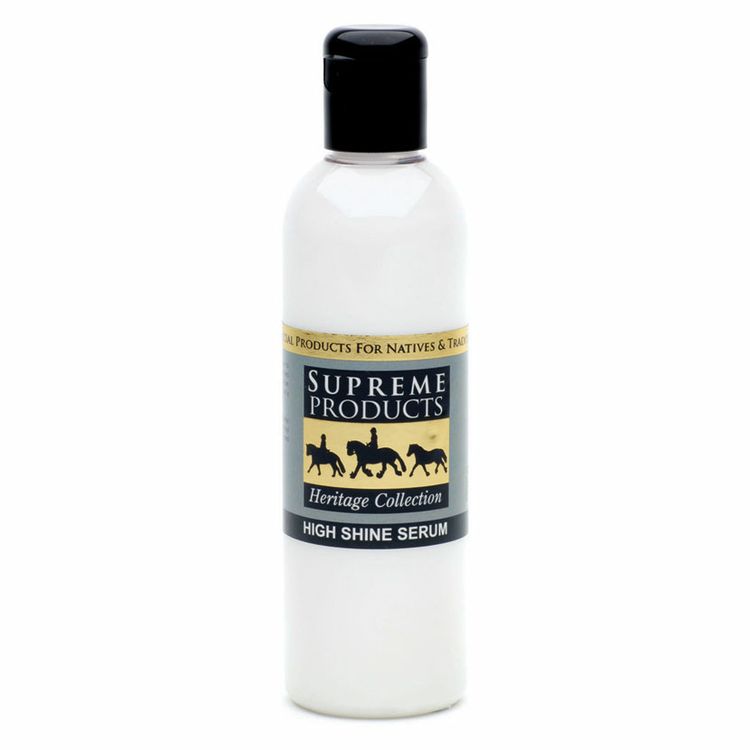 Supreme Products High Shine Serum can be used to add the finishing touches to the coat, quarters and legs before entering the ring. Light in texture, it will repel dust and lay the coat, creating a shiny finish. A non-greasy formula with conditioning properties that will leave the hair feeling silky soft. Can be used on all coats types and is particularly suited to natives and traditionals with coarser hair as it assists in smoothing frizz.