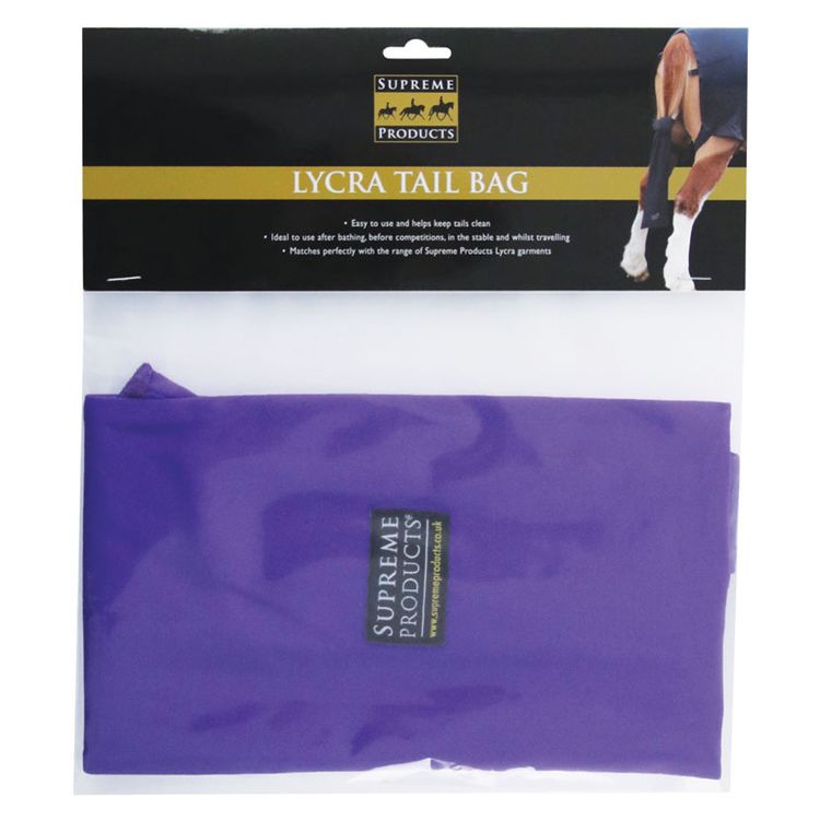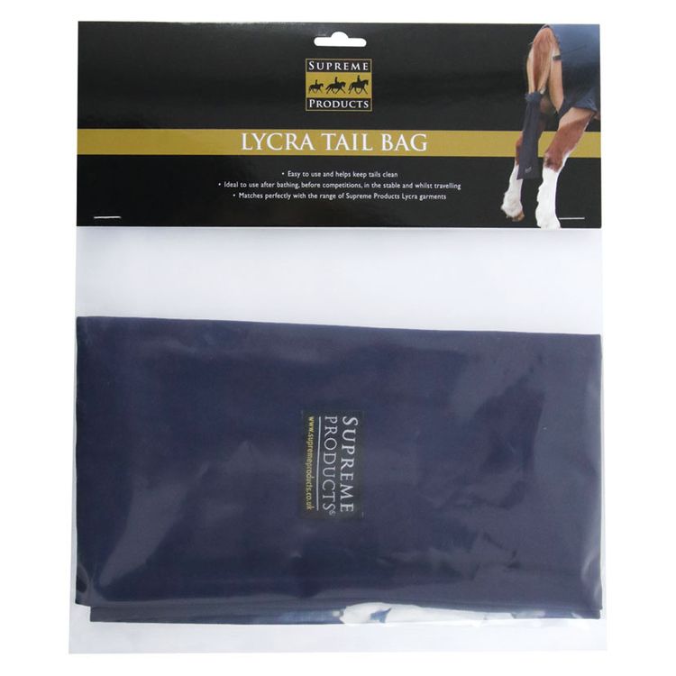 The Supreme Products Lycra Tail Bag is easy to use and helps keep tails clean. Ideal to use after bathing, before competitions, in the stable and whilst traveling. Simply plait your horses tail, place inside the bag and thread the ties through the plait at the base to secure in place. Matches perfectly with the other Supreme Products Lycra garments in the range.