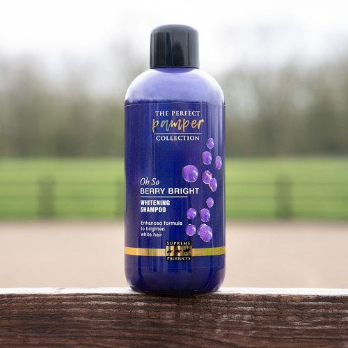 A luxurious whitening shampoo specially formulated to neutralise and lift yellow stains and brighten white hair. Conditioning agents and a fusion of avocado and wheat germ extracts will protect and repair the coat from damage, leaving it shiny, bright, and in brilliant condition. Beautifully fragranced with berries, this shampoo is the perfect pampering treat for your horse and will leave them smelling sublime every time!