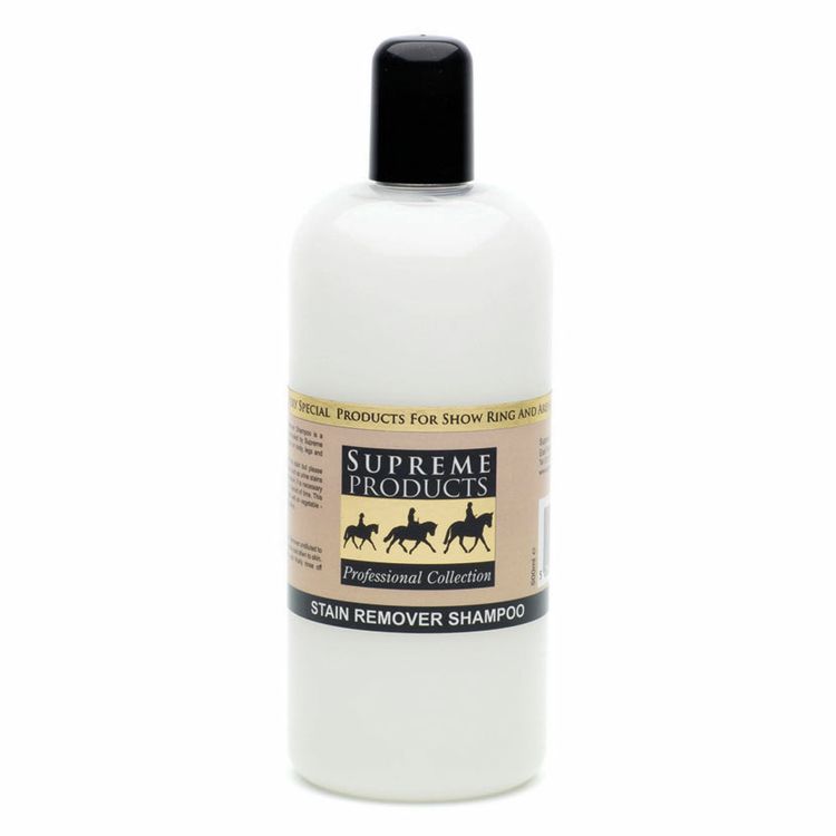 For older, established stains, use Supreme Products Stain Remover Shampoo directly on to the affected area and work in to the stain. Further applications may be needed for stubborn stains. With regular use, this shampoo will assist with the removal of yellow stains from white tails.