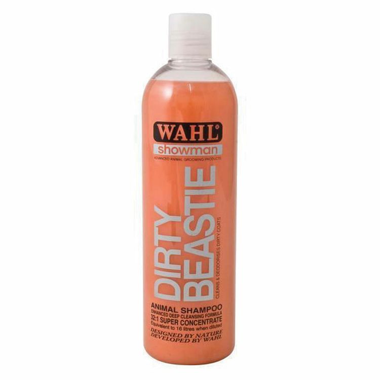 Wahl Dirty Beastie Shampoo is designed for use on dirty, thick or matted coats. This shampoo is based on natural ingredients and contains no harmful detergents or cleansers. The perfectly balanced formula including extracts of peach, pear, passion-flower and kiwi fruit, will effectively cleanse dirty, thick or matted coats and deodorise even the smelliest coat.