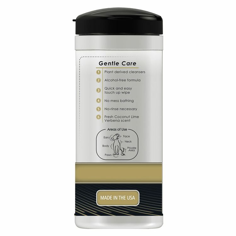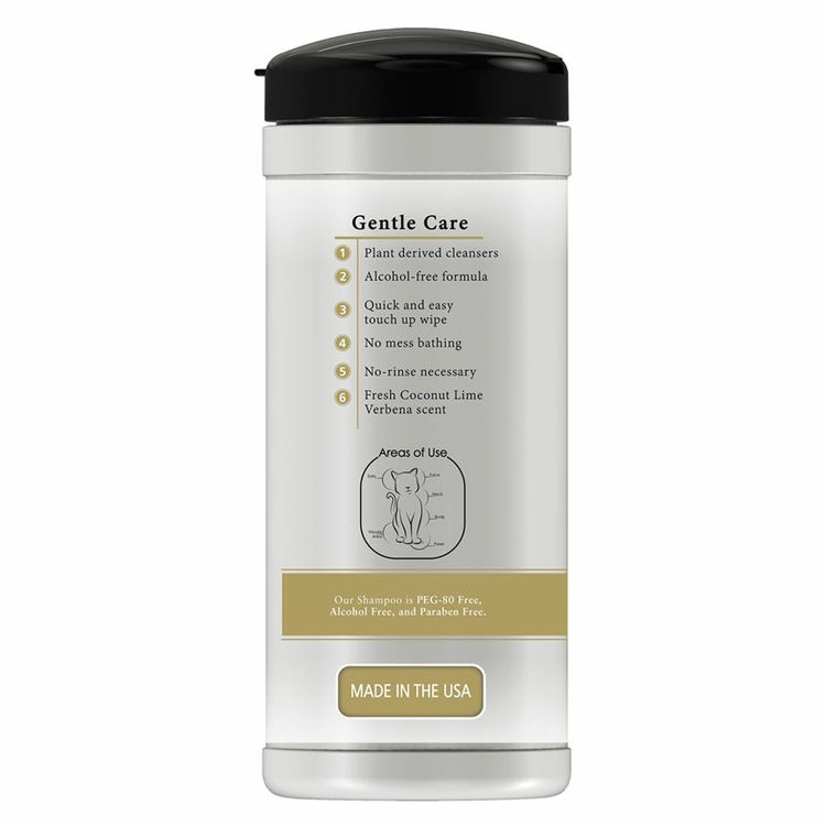 50 Coconut lime verbena refresh cleaning wipes CAT. Cleaning your pet quickly and easily by removing dirt and odour. Alcohol-Free formula, quick and easy touch up wipe. No mess bathing, no rinse necessary. All plant derived ingredients.