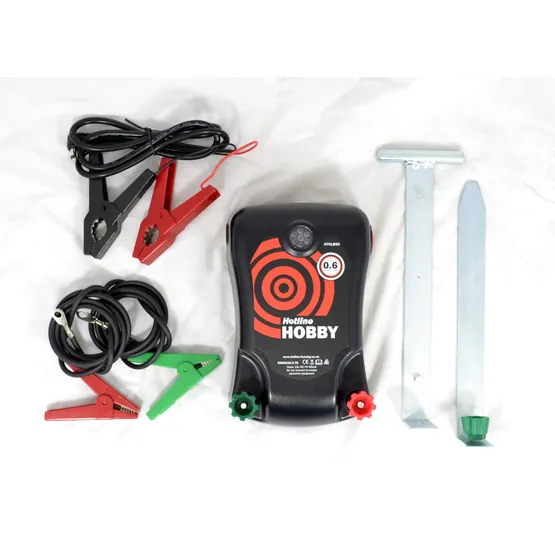 The Hotline Hobby energiser offers a reliable, mid-powered solution for smaller electric fencing setups. Designed as a 12V battery-powered unit, it provides an excellent balance between power and battery life, making it ideal for short fence runs such as poultry netting or small paddocks.