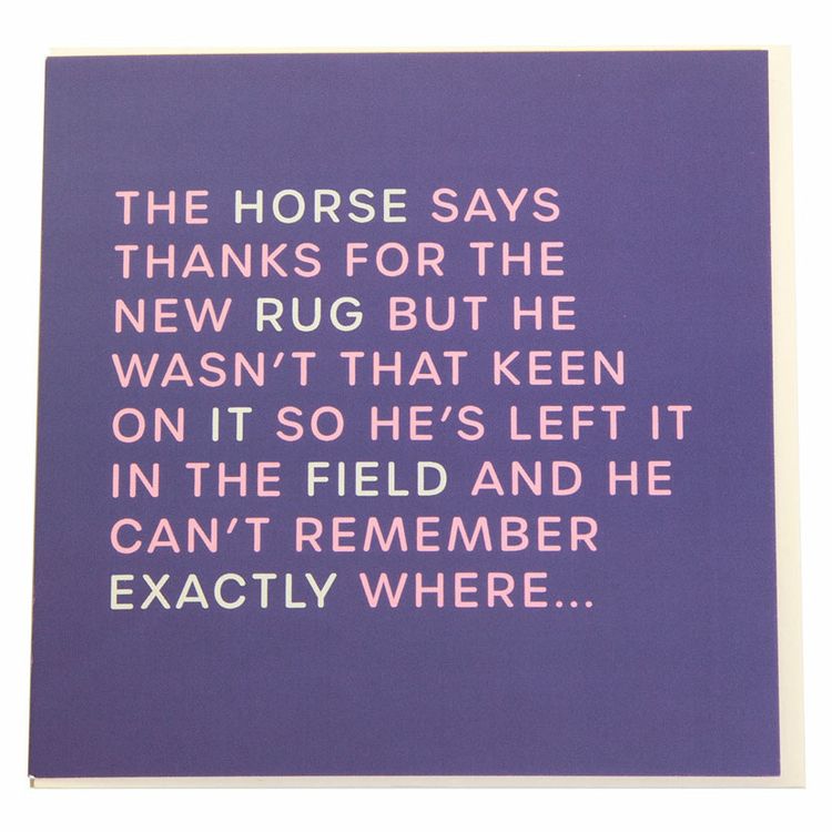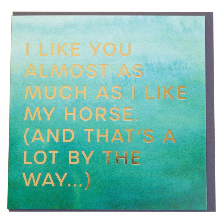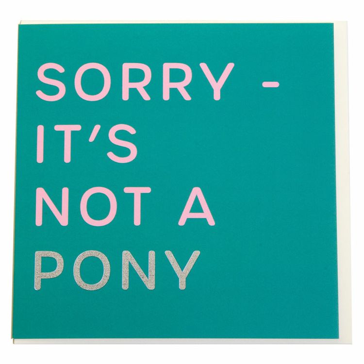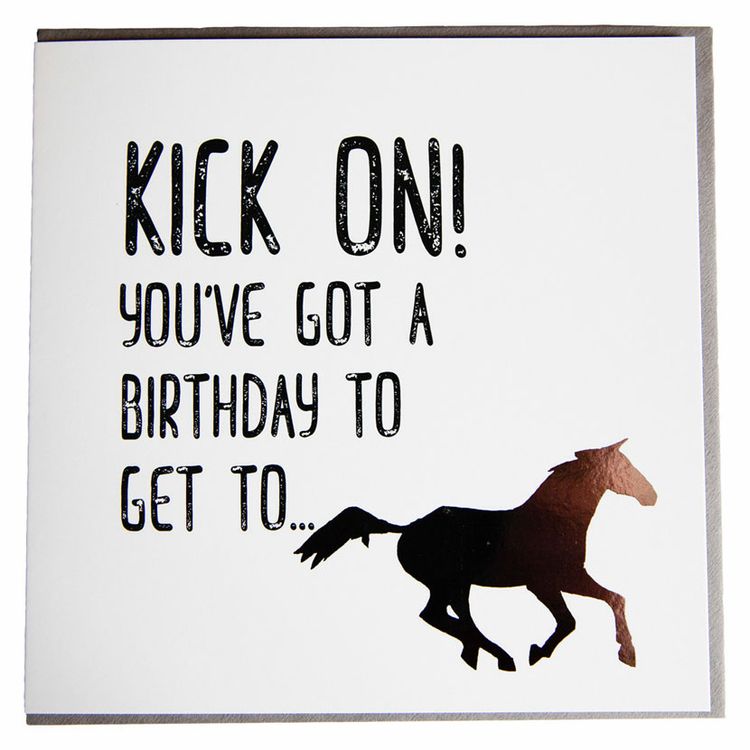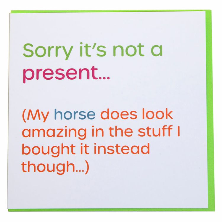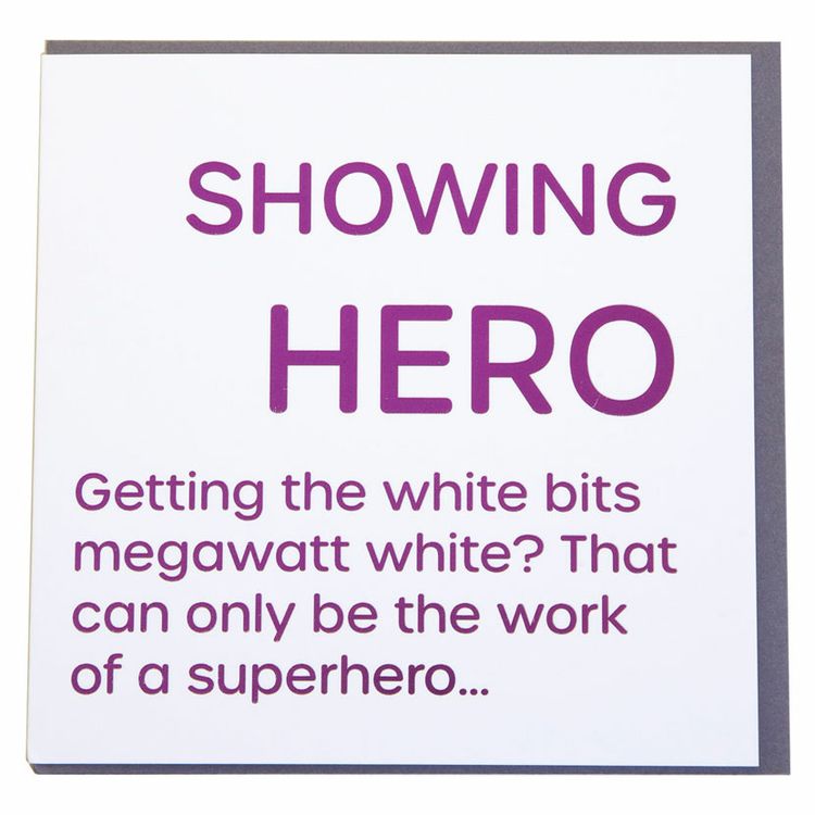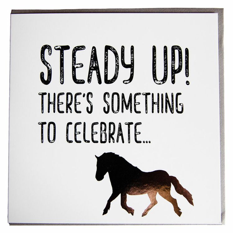 A humourous foiled card from the Gubblecote 'Wordy' range. Supplied with a contrasting envelope. Blank inside. Individually cellophane wrapped.