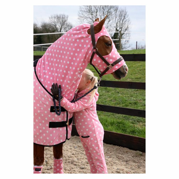 A must have item for any child’s wardrobe! Made with super soft high quality fleece, this stylish and practical eye catching polka dot onesie is sure to keep kids clean and cosy at competitions and nights away in the lorry. Featuring a hood for that extra snug feeling and two pockets perfect for keeping pony treats in, who isn’t going to want one! Team with the other items in the Supreme Products Dotty Fleece Collection for a look we are loving. Available in Rosette Red and Pretty Pink.