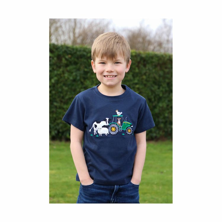 The British Country Collection Farmyard Children's T-Shirt, a delightful addition to your little one's wardrobe. This charming t-shirt features an appliqued farmyard design that captures the spirit of the countryside. Available in two classic colours, navy and red, you can choose the one that best suits your child's style and personality. The navy colour adds a touch of sophistication, while the red colour brings a vibrant and playful flair.