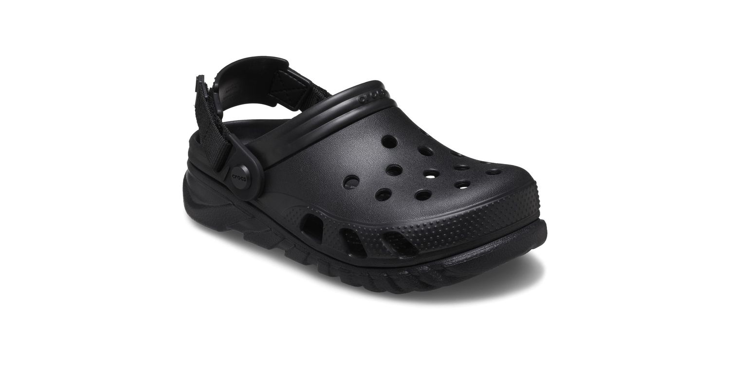 Bigger, better, and back in action, the sport-inspired Crocs Duet Max II Black Clog brings a more approachable silhouette, to everyday street style. A rugged, trend right outsole adds a modern twist while adjustable back straps allow for the perfect fit.