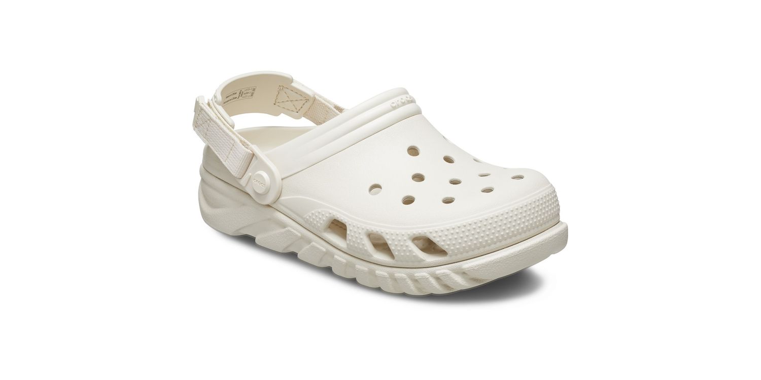 Bigger, better, and back in action, the sport-inspired Crocs Duet White Max II Clog brings a more approachable silhouette, to every day street style. A rugged, trend right outsole adds a modern twist while adjustable back straps allow for the perfect fit.
