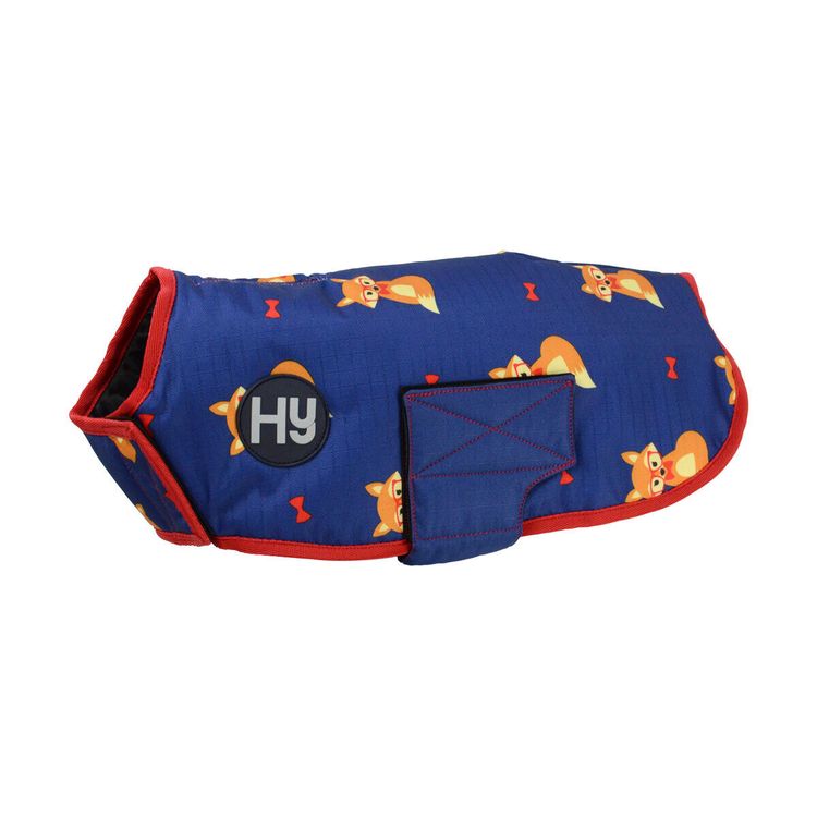Fits small dog well when measured from back of neck to tail - good quality material and useful that it has a gap for lead to fit through on the back