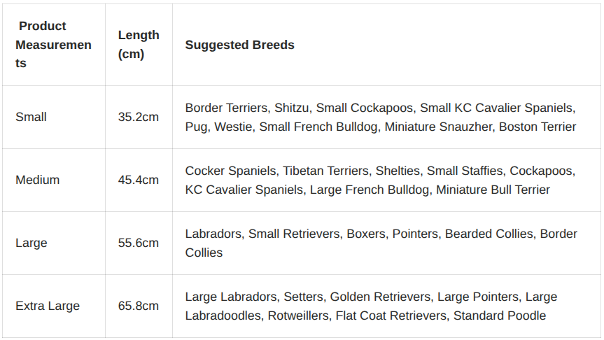 X-Small – Approximately 25cm, fits chest size from 50cm to 60cm+, neck size adjustable from 30cm to 38cm. Small – Approximately 33cm, fits chest size from 58cm to 70cm+, neck size adjustable from 32cm to 44cm. Medium – Approximately 41cm, fits chest size from 64cm to 77cm+, neck size adjustable from 38cm to 54cm. Large – Approximately 49cm, fits chest size from 68cm to 81cm+, neck size adjustable from 42cm to 56cm. X-Large – Approximately 57cm, fits chest size from 78cm to 93cm+, neck size adjustable from 46cm to 58cm. XX-Large – Approximately 65cm, fits chest size from 82cm to 97cm+, neck size adjustable from 48cm to 68cm.