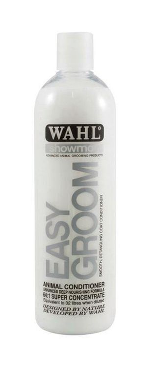 Wahl Easy Groom Conditioner is based on natural ingredients and contains np harmful detergents or cleansers The perfectly balanced formula containing Vitamin E, includes exceptional conditioning compounds to gently enrich, moisturise and protect the hair after shampooing The range of specifically formulated ingredients will revitalise the coat leaving it smooth, soft and shiny with no sticky or waxy residue.