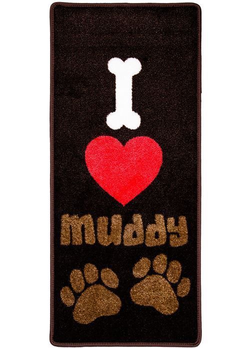 The I Love Muddy Paws Dog Mat is perfect for preventing muddy paws and dirt from being brought into your home. Made with an absorbent design and a non-slip backing that works to catch anything your dog brings in. This rug is also completely machine washable.