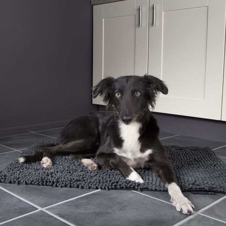 Scruffs Noodle Dry Mat is extremely absorbent, easily soaking up excess moisture, enabling your dogs’ coat to dry quickly after a wet and muddy walk. Micro-fibre chenille is used to produce the dry mats' 'noodles'. The micro-fibre material is made from millions of textured, ultrafine strands woven together to achieve a surface area that is much greater than the actual size of the dry mat.