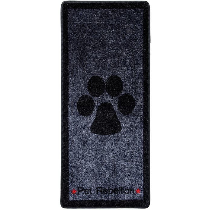 The Pet Rebellion 'Stop Muddy Paws' Large Grey Dog Mat is a highly effective solution for keeping your home clean and protected from muddy paws. The thick and absorbent pile of this mat is designed to remove dirt and mud from your pet's paws, preventing it from being tracked throughout your house. With its non-slip backing, the mat stays securely in place, providing a stable surface for your pet to step on. It is fully machine washable, allowing you to easily eliminate bacteria and keep your home smelling fresh