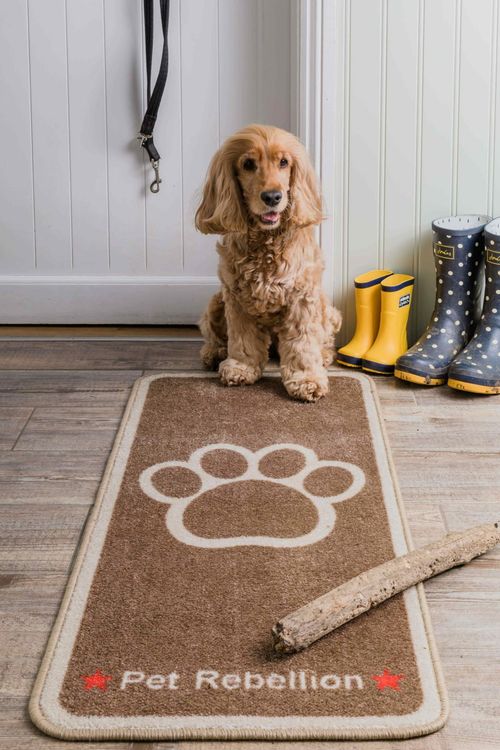 Pet Rebellion stop muddy paws biscuit dog mat is a highly effective solution for keeping your home clean and free from muddy paw prints. the absorbent pile of our barrier rug is specially designed to trap and remove mud, ensuring that your floors stay pristine. with its non-slip backing and rounded corners, the mat stays securely in place, providing a stable surface for your pets.