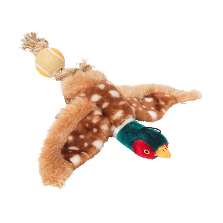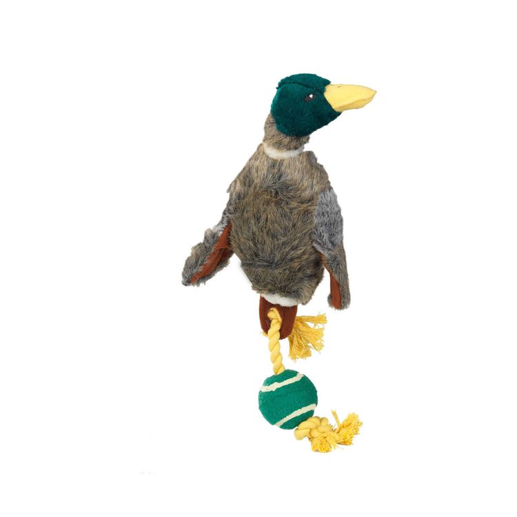 Your dog will love this plush dog toy. Colourfully detailed and fun to throw around using the rope tail and ball. This toy does contain a squeaker and embroidered eyes for safety.